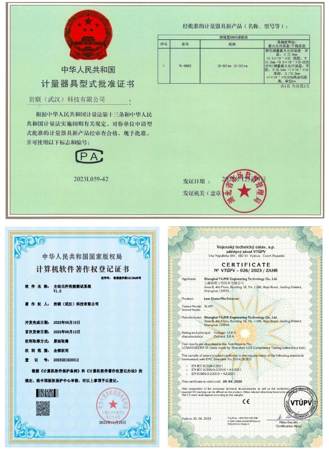 2023年以来,岩联技术凭借产品迭代和技术创新屡获殊荣,先后取得了一系列相关资质,在技术及产品资质方面取得了包括不限于计量器具型式批准证书1本、专利资质2项、软件著作权15项、矿用产品安全标志资质6项、YL-PIT通过欧盟CE认证,并参编贵州省《城镇排水管道探测与检测评估技术标准》;