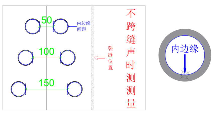 核心思想:利用声波在混凝土中传播,遇到裂缝时发生绕射(衍射)现象,通过比较跨缝和不跨缝测量的声时差,来计算裂缝的深度。