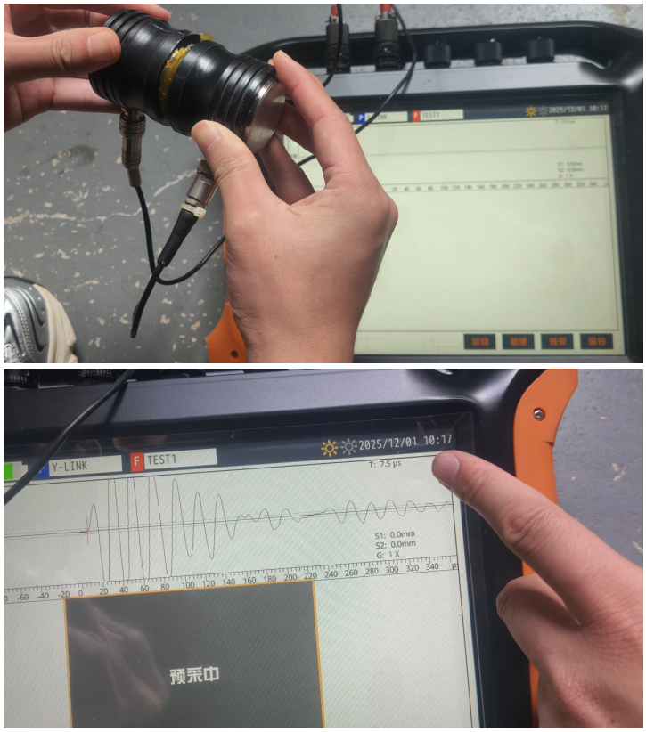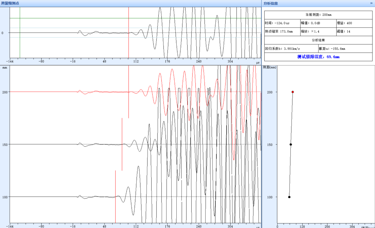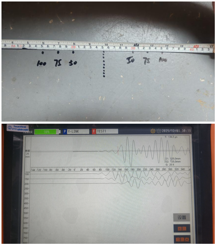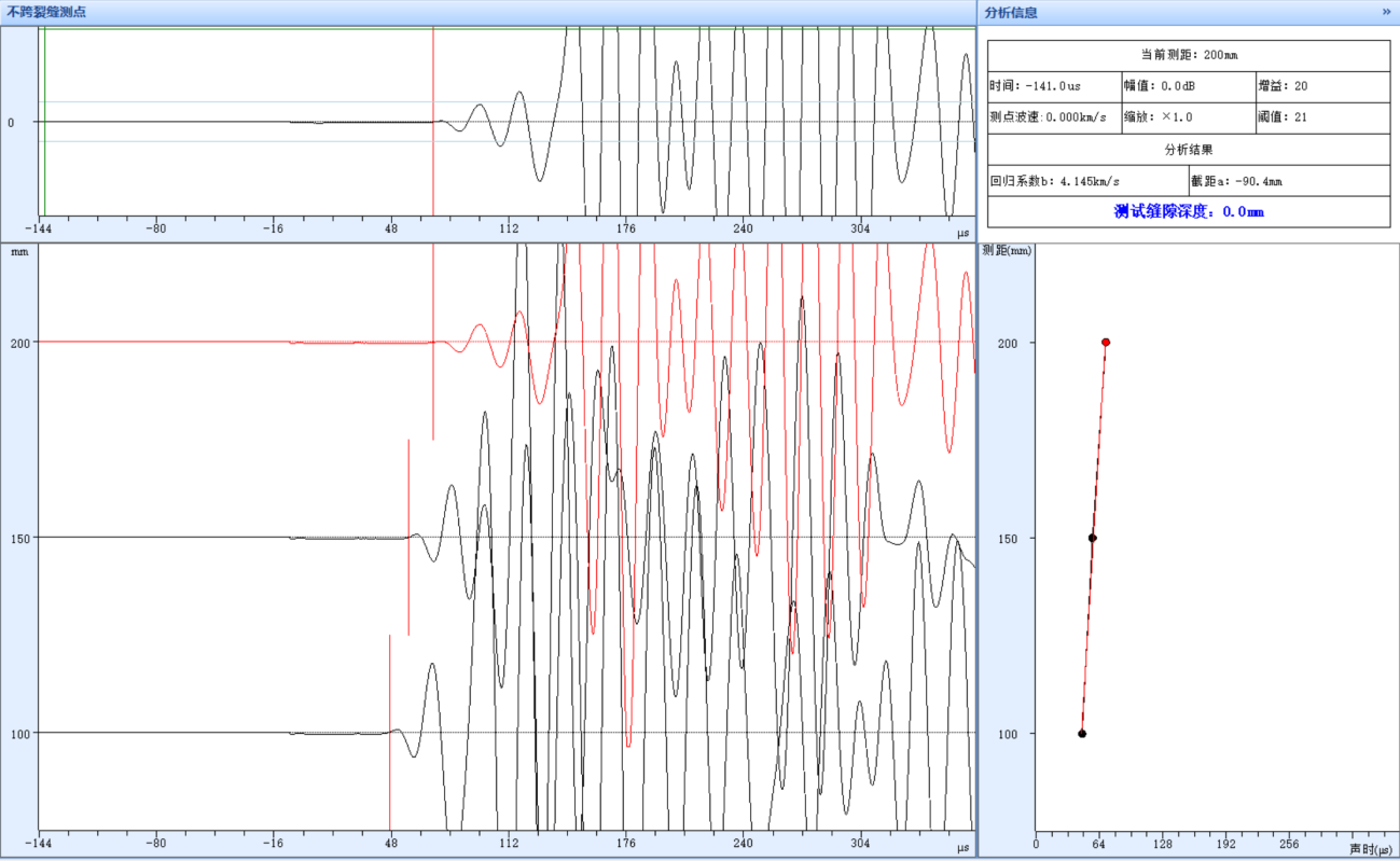 详细记录所有测距和对应的声时,并观察波形质量。